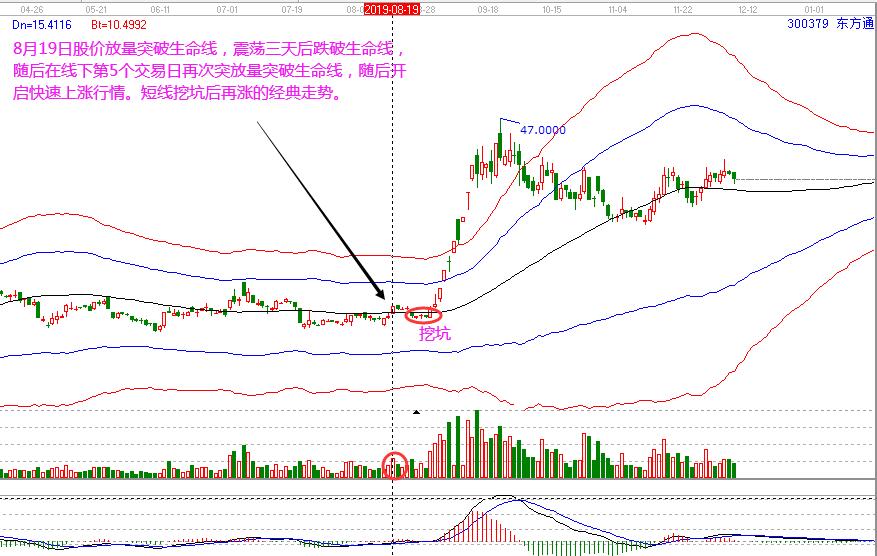 東方通:8月19日股價(jià)放量突破生命線,震蕩三天后跌破生命線,隨后在線下第5個(gè)交易日再次突放量突破生命線,隨后開(kāi)啟快速上漲行情。短線挖坑后再漲的經(jīng)典走勢(shì)。