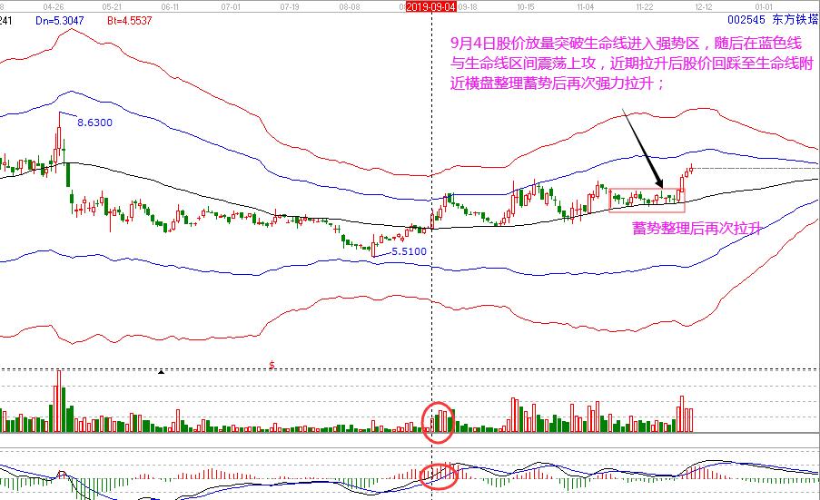 東方鐵塔:9月4日股價(jià)放量突破生命線進(jìn)入強(qiáng)勢(shì)區(qū),隨后在藍(lán)色線與生命線區(qū)間震蕩上攻,近期拉升后股價(jià)回踩至生命線附近橫盤(pán)整理蓄勢(shì)后再次強(qiáng)力拉升。