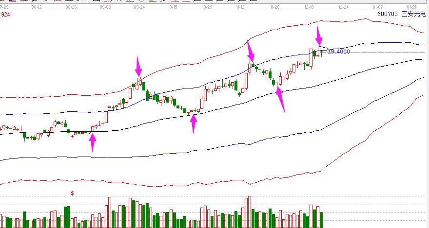 我們看圖形,可以很清晰看到,當三安光電從下往上突破站位生命線位置,打破平衡從弱勢進入強勢,就是新的買點位置,或是從極陽衰退,回調(diào)至生命線附近,同樣是一波上漲的啟動位置。