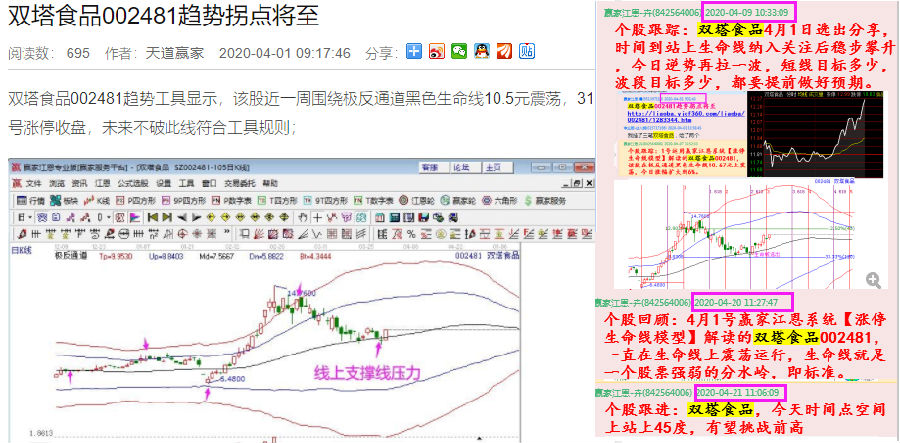 雙塔食品,贏家江恩4月1日個(gè)股處于極反通道生命線以及百分比33.33%共振價(jià)格支撐位置?;仡櫷谖覀冞x出的經(jīng)典個(gè)股,其中就有一定比例的個(gè)股是在江恩百分比三分位或是半分位支撐和生命線共振的位置選出。歷史在不斷的重復(fù),機(jī)會(huì)也在不斷的給出,善于總結(jié)和發(fā)現(xiàn),就一定能得到好的結(jié)果。