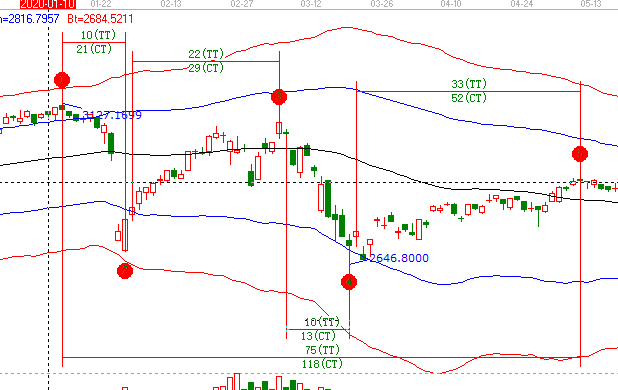 是否可以預期一下,下個循環(huán)時間:下跌+上漲=循環(huán)平均值≈38TT(40天左右);如果最猛烈的下跌時間是10TT左右,那么從5.19日算起,6.1日應該是下一個低點時間。(這里5.11-5.19這段時間,不知道怎么處理,但歸到下跌時間內又不合適)。