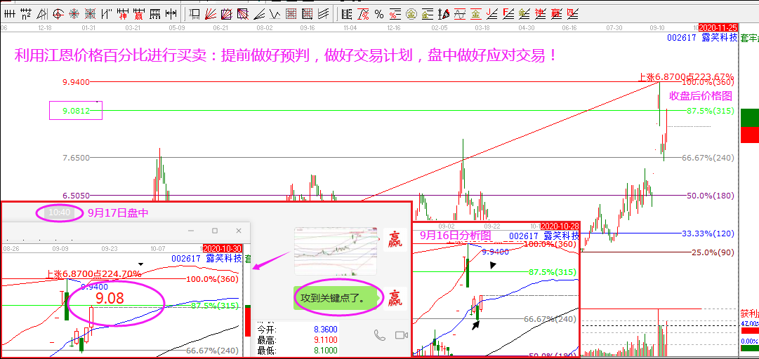 贏家江恩1999年至今20余年,專注江恩理論的研究、應(yīng)用、培訓(xùn)及推廣。在日日大盤分析及個(gè)股的實(shí)戰(zhàn)分析中,一起畫圖,一起鑒證!利亞德8月31日選出,強(qiáng)調(diào)9月2日時(shí)間窗口。對照去看,此時(shí)間點(diǎn)直接強(qiáng)勢突破0度位進(jìn)入價(jià)格新循環(huán);再往前看2倍時(shí)間點(diǎn)一樣是強(qiáng)勢突破50%價(jià)格位!再跟隨箭頭體會(huì)循環(huán)1和循環(huán)2的實(shí)際走勢?是的,歷史在重演!當(dāng)前處于第3個(gè)循環(huán)中,空間、時(shí)間如何演繹?做好預(yù)期的同時(shí),等待市場揭曉答案!