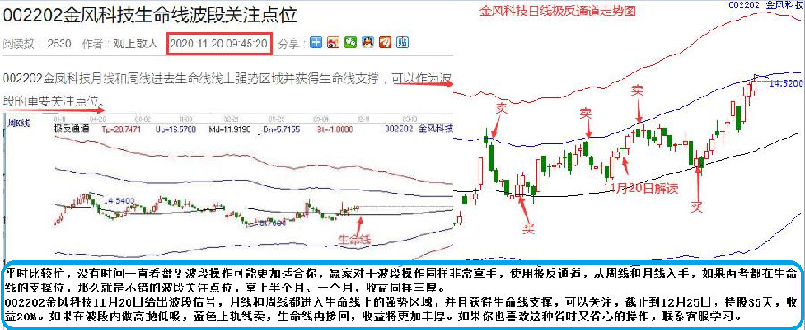 002202金風(fēng)科技11月20日給出波段信號(hào),月線和周線都進(jìn)入生命線上的強(qiáng)勢(shì)區(qū)域,并且獲得生命線支撐,可以關(guān)注,截止到12月25日,持股35天,收益20%。如果在波段內(nèi)做高拋低吸,藍(lán)色上軌線賣,生命線再接回,收益將更加豐厚。