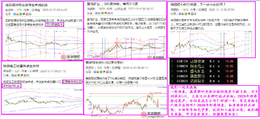 一周結(jié)束,贏家聊吧更新分析的很多個(gè)股上板,今天列舉出5只,大家可以去聊吧驗(yàn)證分析。2020年即將接近尾聲,你的收益怎么樣?回顧一年,有沒有給自己做個(gè)總結(jié)呢?2020年即將結(jié)束,如果你做的不理想,不斷給市場(chǎng)交學(xué)費(fèi),歡迎加入贏家江恩,我們攜手共贏,學(xué)習(xí)分析技術(shù),把握投資機(jī)會(huì)!