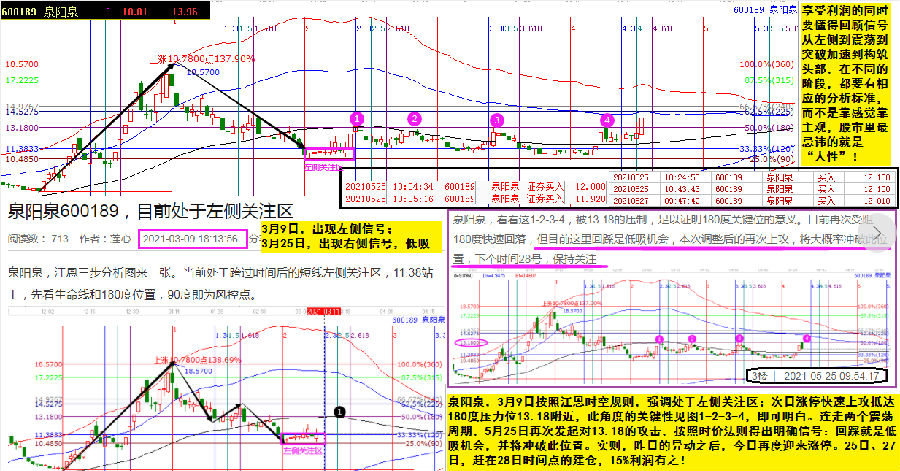 泉陽泉,3月9日按照江恩時空規(guī)則,強調(diào)處于左側(cè)關(guān)注區(qū);次日漲??焖偕瞎サ诌_180度壓力位13.18附近,此角度的關(guān)鍵性見圖1-2-3-4,即可明白。連走兩個震蕩周期,5月25日再次發(fā)起對13.18的攻擊,按照時價法則得出明確信號:回踩就是低吸機會,并將沖破此位置。實則,6月2日的異動之后,3日再度迎來漲停。25日、27日,趕在28日時間點的建倉,15%利潤有之!