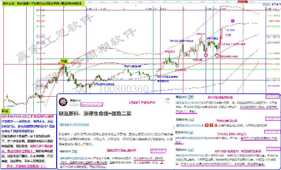 以聯(lián)泓新科上市的第一波上漲為歷史因子,作三步分析圖。跟隨圖中的標(biāo)注及相應(yīng)的解讀,可以發(fā)現(xiàn):期間幾乎重要的低點、高點均落在江恩線上。時價有序的律動,持股不動已翻倍;在支撐低吸、壓力高拋,利潤更佳。不多言看圖即可?! ?/p>