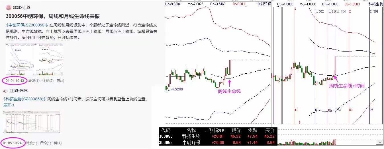 當(dāng)股價(jià)月線,周線,都處于生命線附近的時(shí)候,同時(shí),日線也處于生命線附近,這就形成了長(zhǎng)期,中期,短期的趨勢(shì)共振,這就是一個(gè)非常好的建倉(cāng)買入信號(hào)。據(jù)此篩選出的中創(chuàng)環(huán)保、科拓生物,今天雙雙20c封板漲停。我們無(wú)法決定市場(chǎng)會(huì)怎么走,能做的只有提升自己的理解,在符合操作的買點(diǎn)買入,在符合賣出的信號(hào)賣出,僅此而已,江恩理論體系,幫助大家提前做市場(chǎng)預(yù)判,并利用江恩規(guī)則去進(jìn)行跟隨。這就足矣。