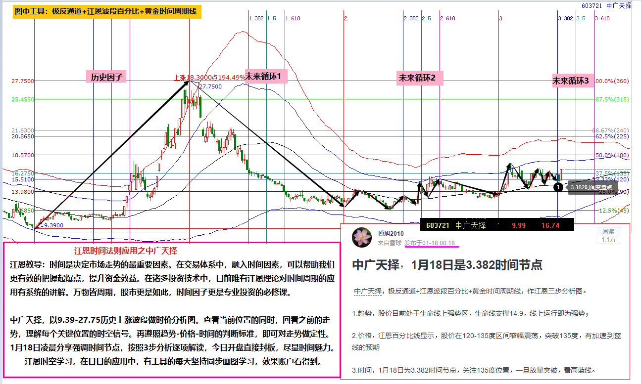 中廣天擇,以9.39-27.75歷史上漲波段做時(shí)價(jià)分析圖。查看當(dāng)前位置的同時(shí),回看之前的走勢(shì),理解每個(gè)關(guān)鍵位置的時(shí)空信號(hào)。再遵照趨勢(shì)-價(jià)格-時(shí)間的判斷標(biāo)準(zhǔn),即可對(duì)走勢(shì)做定性。