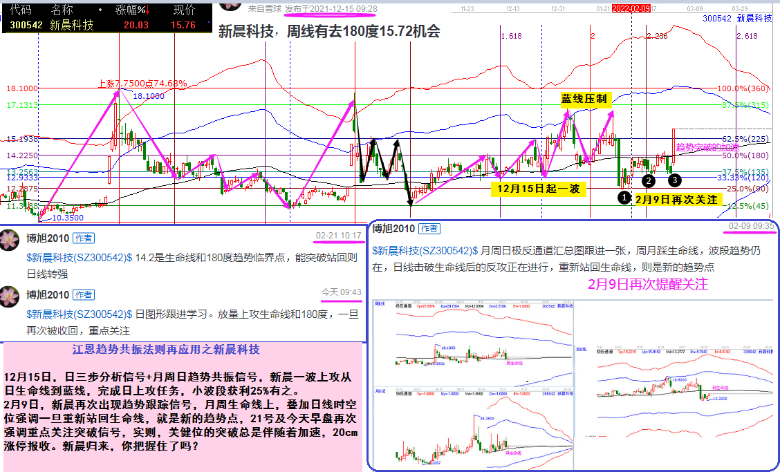 2月9日,新晨再次出現(xiàn)趨勢跟蹤信號,月周生命線上,疊加日線時空位強調(diào)一旦重新站回生命線,就是新的趨勢點,21號及今天早盤再次強調(diào)重點關(guān)注突破信號,實則,關(guān)健位的突破總是伴隨著加速,20cm漲停報收。新晨歸來,知道如何把握了嗎?