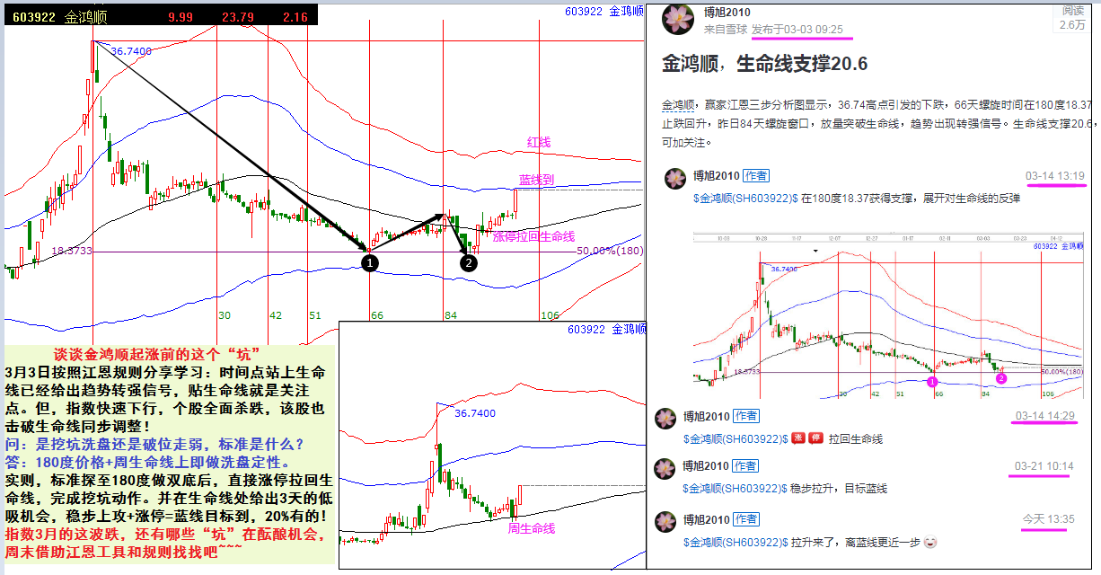 3月3日按照江恩規(guī)則分享學(xué)習(xí):時(shí)間點(diǎn)站上生命線已經(jīng)給出趨勢(shì)轉(zhuǎn)強(qiáng)信號(hào),貼生命線就是關(guān)注點(diǎn)。但,指數(shù)快速下行,個(gè)股全面殺跌,該股也擊破生命線同步調(diào)整!