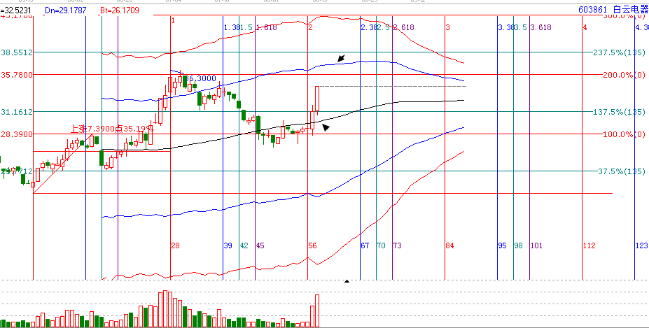 當(dāng)前大盤在生命線上維持震蕩, 由于近期量能未能持續(xù)放大,因此,震動(dòng)走勢延續(xù),個(gè)股操作難度不小,今天盤中銀行、地產(chǎn)等權(quán)重股再次拉盤上漲,但整體量能依舊未能有效放大,后期走勢難免反復(fù),這對(duì)我們選股要求很高,因此,在后期的選股中,仍然是以生命線附近的股票為首要參考對(duì)象,結(jié)合價(jià)格及時(shí)間因素做好優(yōu)中選優(yōu),對(duì)于今天操作的白云電器(603861),我們做下簡單的解析。
