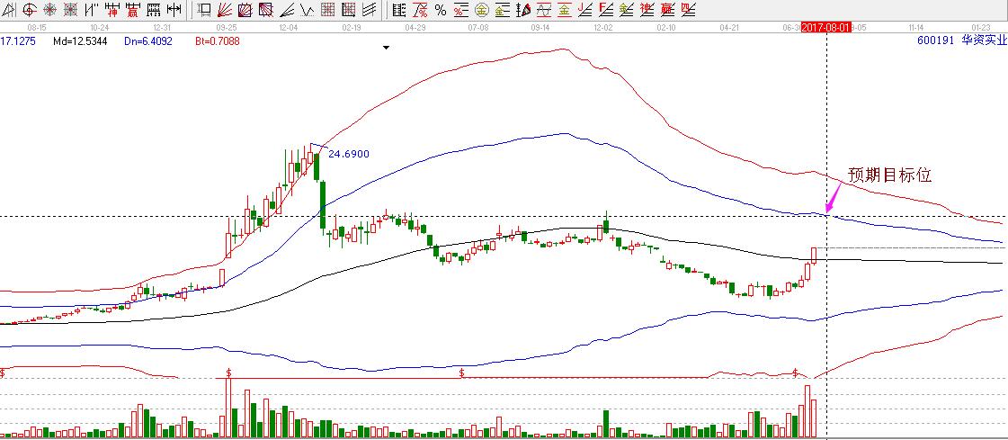 上面我們知道為什么選出來這個(gè)股票,又是怎么通過技術(shù)分析做好持股拿到利潤,我們就再分析一下這個(gè)股票未來能走到什么位置。從周線圖形上看,個(gè)股也放量突破了極反通道生命線的位置,和日線極反通道操作規(guī)則一樣,站穩(wěn)一線看高一線,周線生命線突破,目標(biāo)位就是周線藍(lán)色上軌線位置,17.00附近,可以繼續(xù)耐心持股。當(dāng)然,市場沒有絕對,在持股過程中,我們還需要通過不斷提高止盈位來保證自己已有利潤的安全。