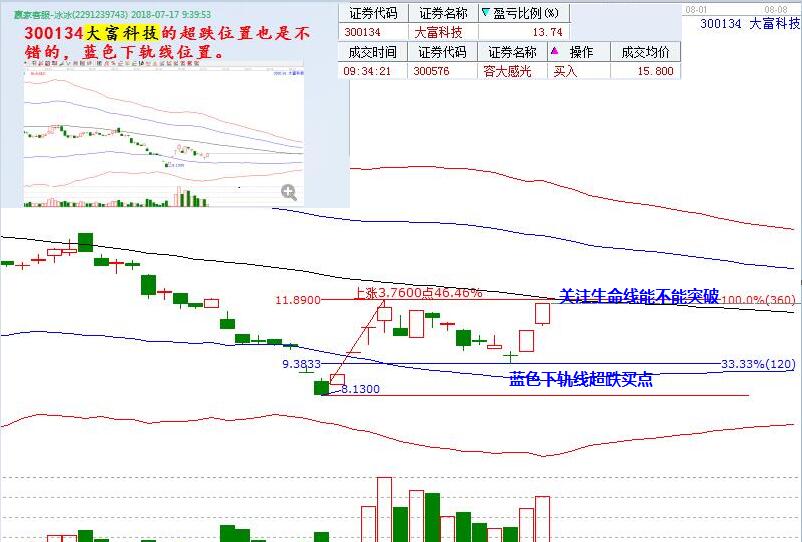 大富科技:17號根據(jù)極反通道藍色下軌線超跌選出,兩個交易日盈利13%。按照極反通道操作規(guī)則,站穩(wěn)一線看高一線,從藍色下軌線附近啟動,第一目標位就是生命線位置,后市關注生命線能否有效突破,一旦突破就進入新的上漲空間。