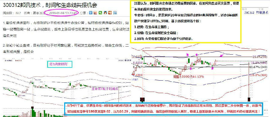 9月4日午盤,依據(jù)生命線+時間選出的邦訊技術(shù),連續(xù)兩日逆勢穩(wěn)健攀升,再次驗證了此選股戰(zhàn)法的實戰(zhàn)性。跟進(jìn)贏家三步分析圖一張,該股當(dāng)前短線支撐參考180度支撐9.02,壓力10.29,突破將挑戰(zhàn)前高。強勢漲停的股招人喜歡,穩(wěn)健上漲的股更不失風(fēng)采,邦訊技術(shù)仍可繼續(xù)關(guān)注!相應(yīng)的圖形如下: