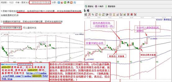 1月3日關(guān)注個(gè)股貴研鉑業(yè)(600459),同樣,股價(jià)在1月2日時(shí)間窗口突破生命線,1月3日通過揚(yáng)帆起航選股器智能選出,當(dāng)天股價(jià)回踩生命線不破,放量拉升,確認(rèn)趨勢反轉(zhuǎn)。短期內(nèi)股價(jià)從生命線直接上漲到藍(lán)色線,短期獲利空間也是近20%。(揚(yáng)帆起航選股器主要選取的是生命線附近個(gè)股,選出后,結(jié)合時(shí)間和價(jià)格精細(xì)把握。)
