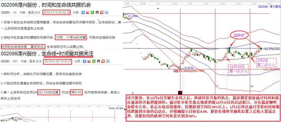 潯興股份,在12月6日突破生命線之后,兩波時(shí)價(jià)共振的機(jī)會(huì),贏家都是提前通過時(shí)間和極反通道的共振把握到的。通過輪中輪變盤點(diǎn)精準(zhǔn)把握12月10日的啟動(dòng)窗口,并在贏家聊吧和群中公布,此后市場連續(xù)漲停,短期獲利空間打30%以上;1月2日再次通過等距時(shí)間周期線把握到市場的啟動(dòng)點(diǎn),并精確提示目標(biāo)位9.69,股價(jià)在漲停突破此位置之后陷入震蕩走勢,該股短線的獲利空間也是達(dá)到近30%??梢?,好的股票可以反復(fù)做,而通過極反通道生命線和時(shí)間窗口選擇個(gè)股就是最簡單的方法。