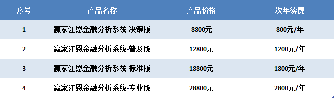 現綜合各方面因素,為了公司的可持續(xù)發(fā)展并能為客戶提供長期優(yōu)質的服務,公司自2021年4月1日起,正式對贏家江恩“決策版”、“普及版”、“標準版”、“專業(yè)版”系統(tǒng)的續(xù)費價格做出調整。(具體收費詳情見下表)
