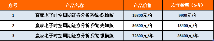 《贏家老子時空周期證券分析系統(tǒng)》于2021年4月8日正式上線,共分為3個版本,具體收費如下: