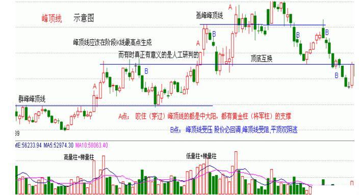 指的是由階段K線最高點(diǎn)畫出的水平線,需要注意的是峰頂線受壓,股價(jià)必然會(huì)出現(xiàn)回調(diào),當(dāng)股價(jià)回踩峰頂線的時(shí)候,預(yù)示著漲停的行情走勢(shì),這個(gè)時(shí)候投資者要觀察股價(jià)K線與峰頂線的位置以及走勢(shì)形態(tài)。