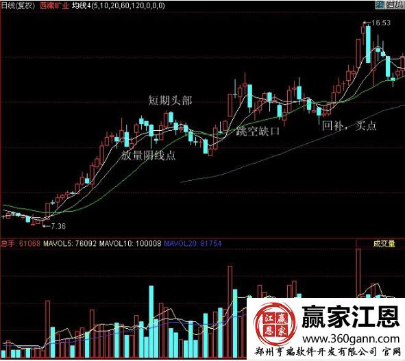 西藏礦業(yè)(000762)從7.36元的低點(diǎn)開始啟動(dòng)拉升,連續(xù)上漲了多個(gè)交易日出現(xiàn)了放出巨量的陰線點(diǎn),并且形成了短期頭部,之后在高位小幅的橫盤運(yùn)行,頭部形態(tài)之后必然會(huì)出現(xiàn)下跌回調(diào)的走勢(shì)形態(tài),股價(jià)獲得均線的上漲支撐,出現(xiàn)跳空缺口,拉升幾個(gè)點(diǎn)的漲幅,之后回踩前期頭部點(diǎn)位,不破支撐,可以進(jìn)行加倉買入操作,等待后市的上漲獲利,在出現(xiàn)均線拐頭向下的走勢(shì)時(shí),及時(shí)的賣出獲利。