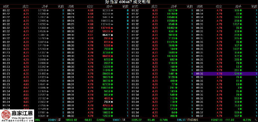 所謂的快就是快速找出快速掛單。在每日9:26分左右漲跌停龍虎榜上找,若有符合買進條件,然后立即以漲停價掛單買入。還是以好當家為例,下圖是好當家的成交量明細。