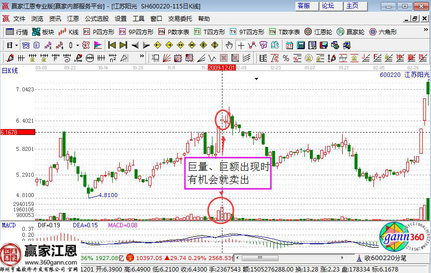 相對于正常成交量放大倍數(shù)很大的個股,成交額越大后市越難以上漲,短線見頂信號越明顯。