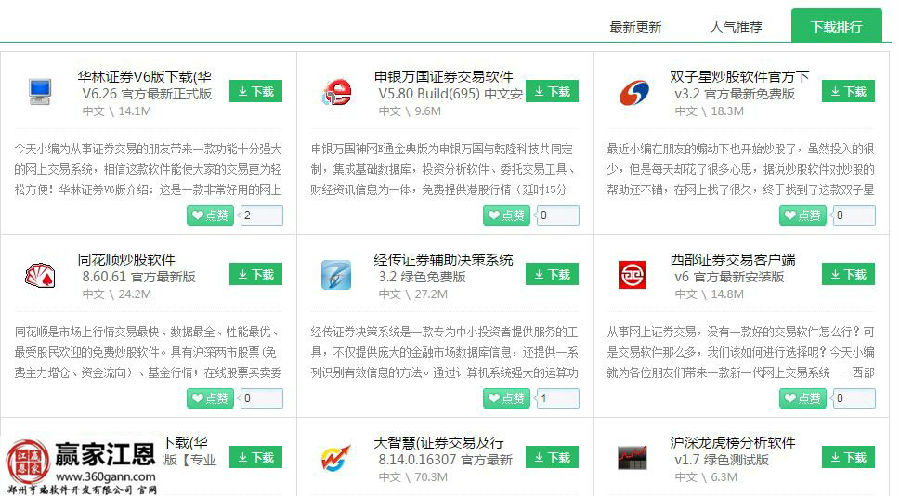 當(dāng)然在翻閱其他網(wǎng)站下載排名又不一樣,基本上也都是我們會接觸的到一些軟件,例如同花順、大智慧、益盟、贏家江恩證券分析系統(tǒng)等等。這些軟件可謂是各有各的優(yōu)缺點,今天我們就來詳細(xì)的了解下。