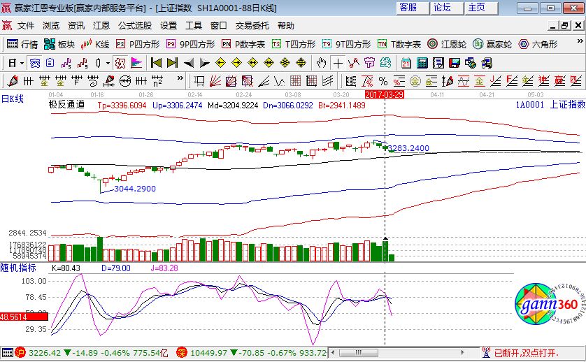 2、k值向上突破d值為買入金叉信號,向下跌破為賣出死叉信號。