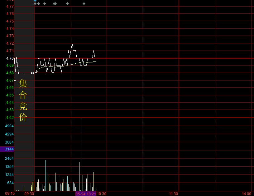 在這5分鐘內(nèi),同樣可以委托買進(jìn)或是賣出單子,但不能撤單了,所以在這個(gè)時(shí)間點(diǎn)的成交量還是比較真實(shí)的,如果是想要搶漲停板,就一定要看準(zhǔn)這5分鐘。而如果不確定買賣的話,就一定不能倉促的在這個(gè)位置掛單。下圖就是運(yùn)用股票軟件所截取的分時(shí)走勢(shì)其中前面灰色顏色部分就是集合競(jìng)價(jià)。