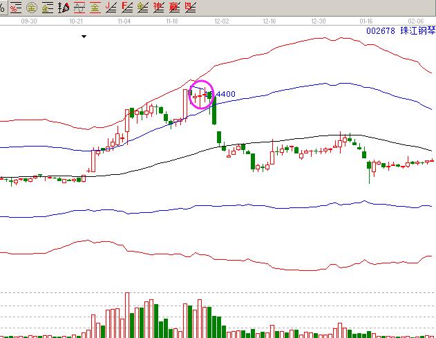 在上漲的過程中出現(xiàn)中大陽線,之后出現(xiàn)跳空跌開收出十字星,是一種見頂?shù)淖邉?。如下面運(yùn)用贏家江恩股票軟件所截的圖形: