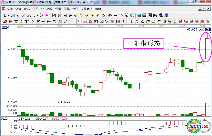 什么是一陽(yáng)指?所謂的一陽(yáng)指指的就是股價(jià)在低位縮量整理,量增價(jià)升相對(duì)與前一有一倍以上,而且是一根比較有力的大陽(yáng)線(xiàn),它可以依據(jù)擊退空方的力量,股價(jià)的上漲,因?yàn)檫@根K線(xiàn)的技術(shù)意義非常大,它就與段譽(yù)的一陽(yáng)指神功有相同的功效,所以就取名是一陽(yáng)指形態(tài)。