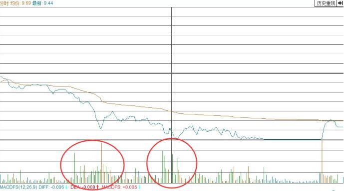 高位品字形的第三根K線(xiàn)形成當(dāng)天,早盤(pán)低開(kāi)后股價(jià)是一路的放量下跌,形成了典型的量?jī)r(jià)背離。如下圖所示,在下面分時(shí)圖中的每一個(gè)低點(diǎn)都出現(xiàn)了放量。反彈也是縮量淺拉一下之后就繼續(xù)下跌,顯然此時(shí)主力出貨是非常堅(jiān)決的,其實(shí)在當(dāng)日來(lái)說(shuō)也沒(méi)有特別理想的賣(mài)點(diǎn),只能在股價(jià)略有反彈的每一次的小高點(diǎn)賣(mài)出比較好了。