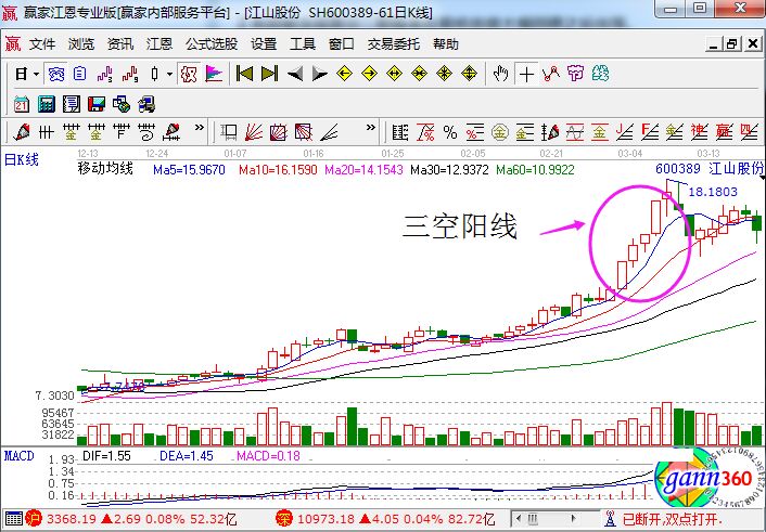 總的來說,只有在第一種情況下,出現(xiàn)連續(xù)三空陽線形態(tài),股價才有可能會放量滯漲,見頂回落的風險才會增加。