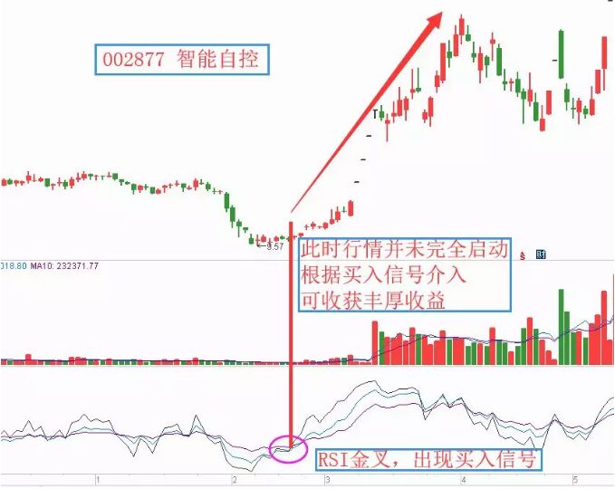 這個(gè)指標(biāo)是有三條線所組成的,有一條長(zhǎng)期的,兩條短期的,如果短期RSI大于長(zhǎng)期RSI為多頭市場(chǎng),反之的話就是空頭市場(chǎng)。短期RSI在20以內(nèi)下超賣區(qū)域內(nèi),由下往上交叉長(zhǎng)期RSI時(shí)間,是買入信號(hào)(如下面的智能自控),短期RSI在80以上超買區(qū)域內(nèi),由上往下交叉長(zhǎng)期RSI時(shí),為賣出信號(hào)。