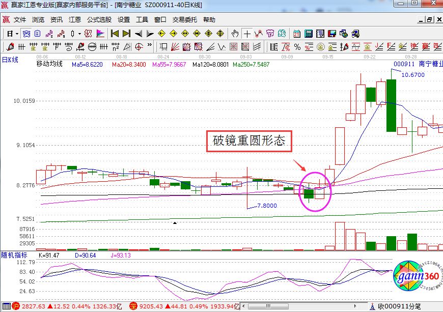 股票破鏡重圓形態(tài)是怎么樣的?它其實指的就是:股價在拉升過程中,莊家常常采取意外的調整來清洗獲利盤,但是股價一般會在55日線附近止跌企穩(wěn),它是由兩根K線組成,第一根是中陰線,第二根是低開高走覆蓋第一根陰線的長陽線,所以在55日附近的這兩根K線就是破鏡重圓形態(tài)。
