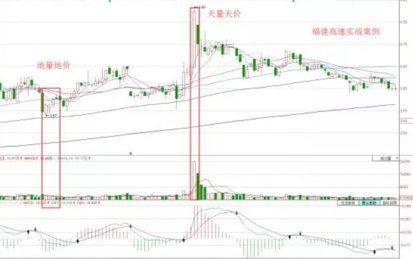 這里重點說明一下:天量天價多數(shù)是受到熱點事件驅(qū)動,一旦熱點消退,就會導致近期獲利資金急速離場,因此,不要著急進場,而要看它的熱點持續(xù)性、看它所處的位置、量價關(guān)系、基本面等等因素進行綜合分析。顯然,福建高速在放出天量天價后,隨后走出了持續(xù)下跌的行情。