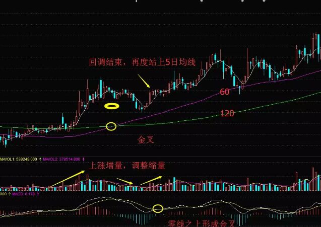 如上圖所示,股價(jià)在經(jīng)過(guò)了長(zhǎng)期下跌之后,已經(jīng)處于相對(duì)的低位了,之后股價(jià)止跌逐步緩慢回升,隨后股價(jià)就開(kāi)始了一波稍強(qiáng)的漲勢(shì),伴隨著明顯的放量,市場(chǎng)人氣開(kāi)始聚焦,而剛剛止跌走平的60日、120日均線(xiàn)開(kāi)始有上行趨勢(shì),之后形成金叉,顯示趨勢(shì)有所反轉(zhuǎn)。