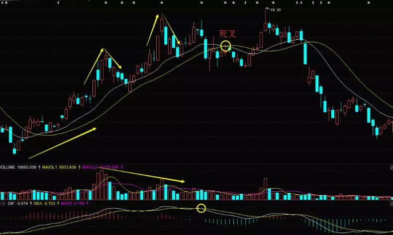 從上面的實(shí)戰(zhàn)案例,我們就可以總結(jié)一下運(yùn)用成交量看趨勢來規(guī)避騙線陷阱的技術(shù)要點(diǎn):K線走波浪式上升趨勢,一浪高過一浪;成交量堆高點(diǎn)降低,顯示處了人氣不足;此時(shí)多空線若形成死叉,則必須出場。
