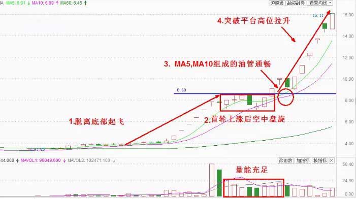 2、 5日均線和10日均線一上一下,形成油管,上漲過(guò)程。