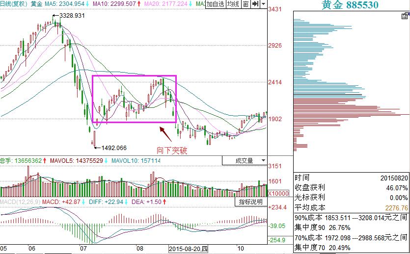 其中需要注意的是,當(dāng)一個方面不認(rèn)可,一個黃金的價格會像另一個邊沿運動甚至是突破,這個時候的突破一般都是真突破,而且價格從成交密集區(qū)突破出來,會沖向離成交密集區(qū)一段距離,這個一段距離就是我們的利潤。