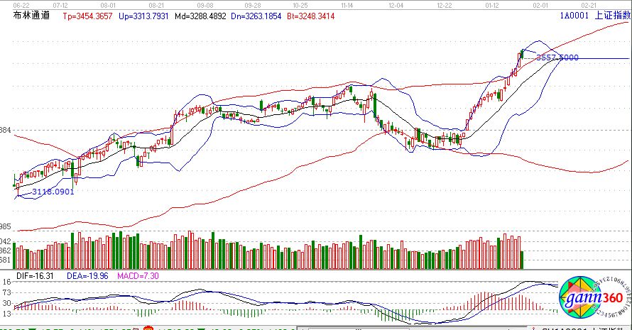 在一些股票軟件會(huì)有布林線,其實(shí)它是根據(jù)統(tǒng)計(jì)學(xué)中的標(biāo)準(zhǔn)差原理設(shè)計(jì)出來的一種非常實(shí)用的技術(shù)指標(biāo),它是有三條軌道組成,在贏家江恩的軟件中它是由五條線組成的(如下)。今天我們主要看傳統(tǒng)的三條線的布林線做單的應(yīng)用。