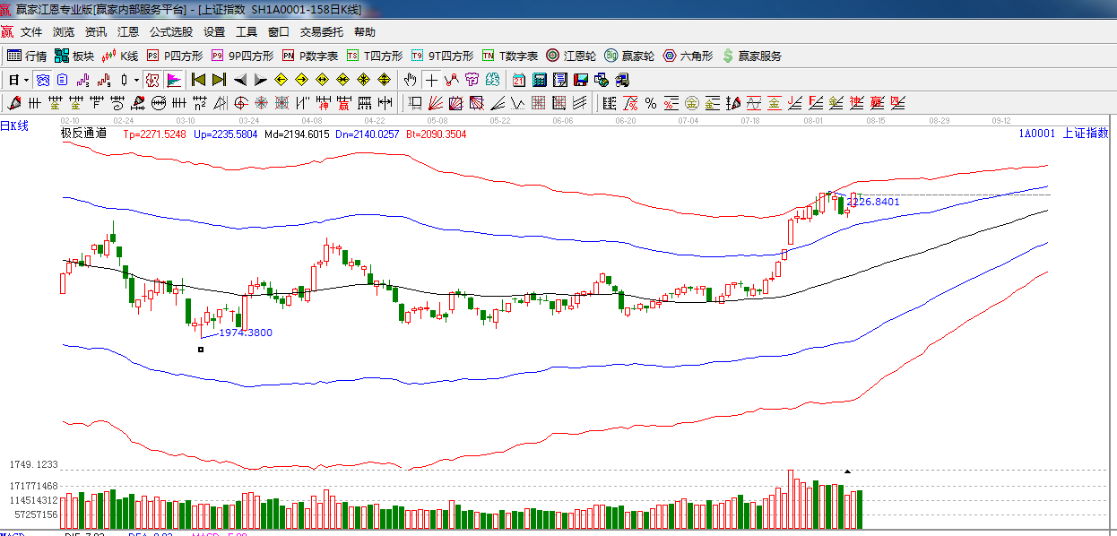 極反通道提示:指數(shù)探底回升,上方極反通道外軌線阻力2242點。