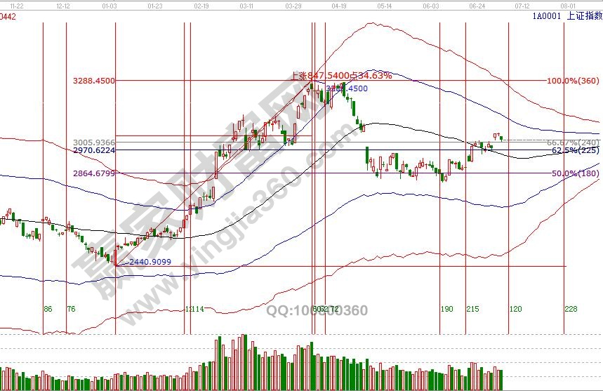 A股3、4號時(shí)間窗口及3051-3065極反通道多周期共振反壓位,時(shí)間與空間的解讀在6月28號及1號在分析中有闡述,同時(shí)今天收盤價(jià)3015與工具測算位置僅僅相差一個(gè)點(diǎn)。目前短周期的周期共振警示還沒有解除,2號盤中在贏家江恩系統(tǒng)學(xué)員區(qū)已談到共振會引起傳遞,目前市場正在按預(yù)期逐級回踩確認(rèn)短期生命線,回撤期間有參考意義的位置是60分鐘生命線,贏家學(xué)員們可以結(jié)合工具盤中跟蹤等待信號確認(rèn)。整體上工具還未給出反彈結(jié)束信號,同時(shí)這里也不具備大幅開倉條件,提高止賺位保持一定持倉做應(yīng)對,7月4號盤中壓力是135度3055點(diǎn)、90度3036點(diǎn),盤中支撐是0度2997點(diǎn)、315度2978點(diǎn)。操作策略,指數(shù)極反通道生命線上安全區(qū)域震蕩上攻,反彈動作還在延續(xù),3051-3067區(qū)間附近高倉位可以分批兌現(xiàn)利潤,整體持倉保持3-5成。