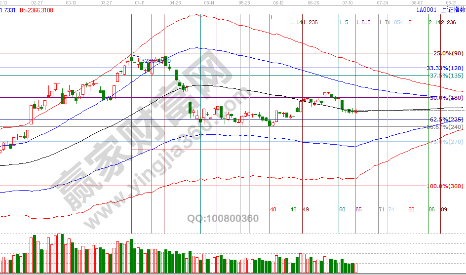 15號是月初通過贏家江恩系統(tǒng)時(shí)間周期工具測算出的7月第二個(gè)時(shí)間窗口,大盤結(jié)束為其3天的黑色生命線下運(yùn)行收復(fù)并站在線上,這是一個(gè)積極信號,不完美之處有兩點(diǎn),一是收復(fù)時(shí)成交量未放大,二是短周期不協(xié)調(diào)。綜合判斷,今日早盤收復(fù)短線參考關(guān)鍵線,依據(jù)工具規(guī)則激進(jìn)者可分開始分批博弈參與,同時(shí)提供了應(yīng)對策略為向下失守60分鐘藍(lán)色下軌線被動(dòng)出局,向上觀察江恩價(jià)格四方形等空間工具測算得出的2844、2966點(diǎn),突破收復(fù)2966后才能向上拓展空間。7月15號盤中壓力是225度2944點(diǎn)、270度2961點(diǎn),盤中支撐是135度2911點(diǎn)、90度2894點(diǎn)。操作策略,指數(shù)圍繞極反通道生命線上下震蕩,2822反彈動(dòng)作還未明確結(jié)束信號,時(shí)間窗口關(guān)注方向選擇,整體持倉保持3成左右。