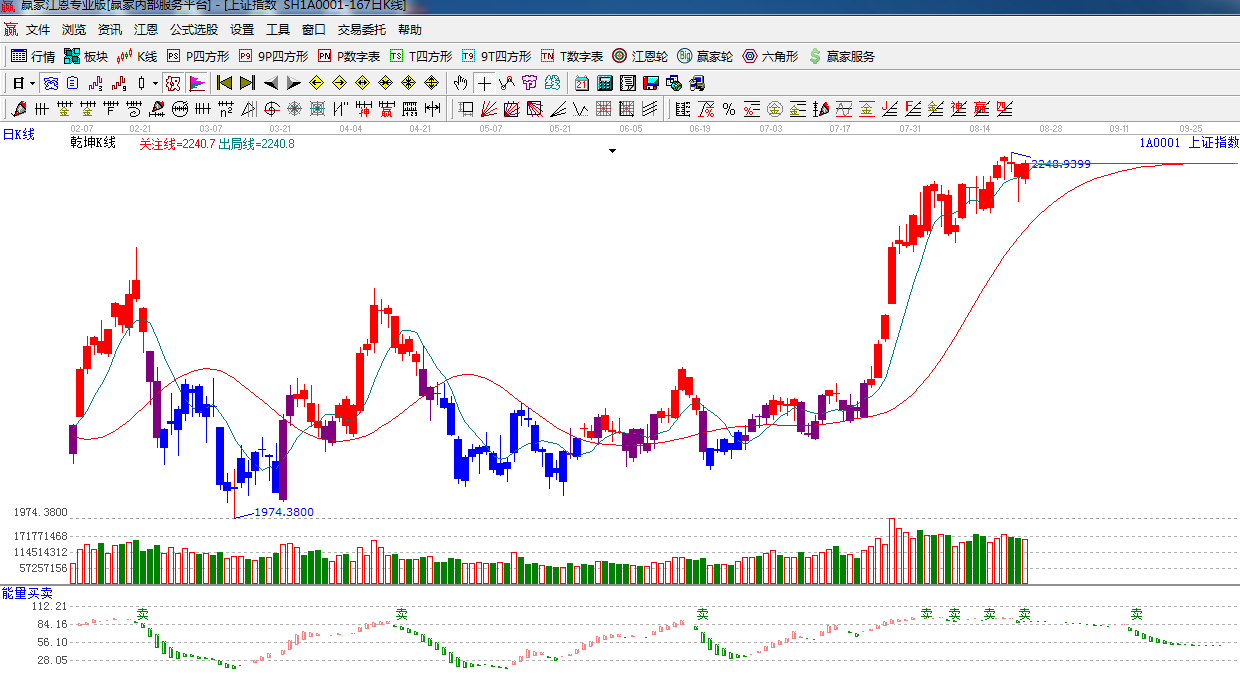 ☆依據(jù)贏家江恩系統(tǒng)能量買賣提示:處于高位超買位置,多空轉(zhuǎn)換節(jié)點處,綠色柱子加長,短期謹慎。