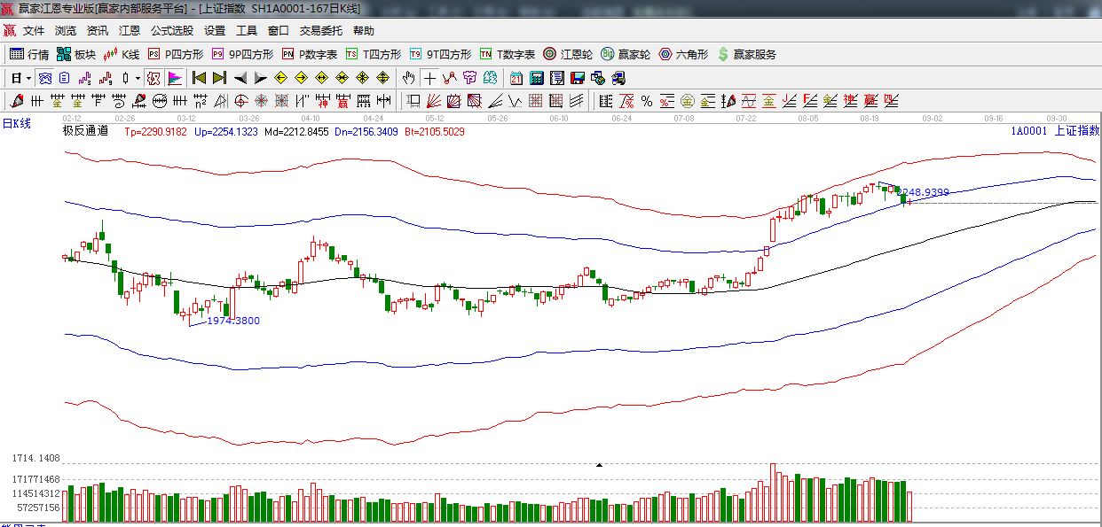 ★依據(jù)贏家江恩系統(tǒng)極反通道提示:外軌線破位,整體趨勢轉(zhuǎn)向弱勢,短期操作謹(jǐn)慎為主。