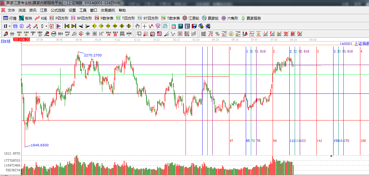 ☆依據(jù)贏家江恩系統(tǒng)波段百分比提示:周三大盤在六角形90度角度線2210一線下方,縮量震蕩,短期如不能收復(fù),將去2170點尋求支撐。
