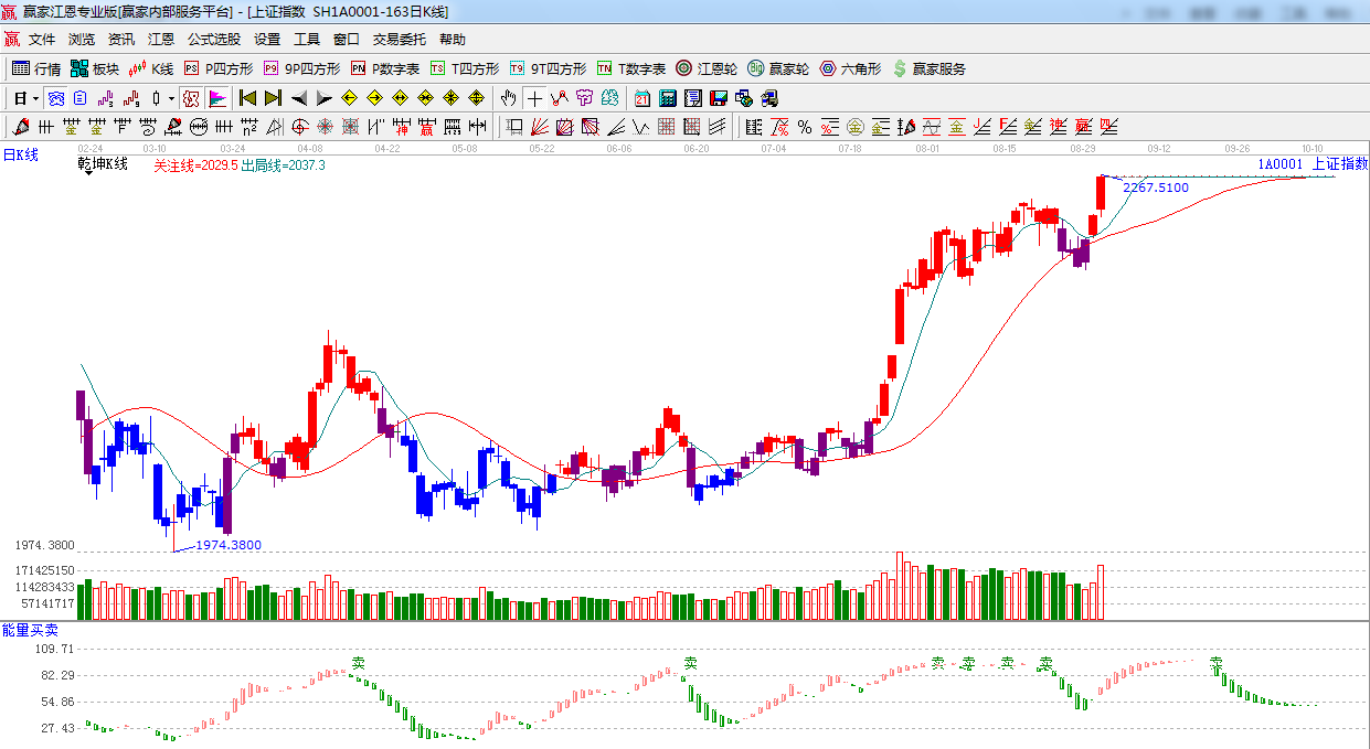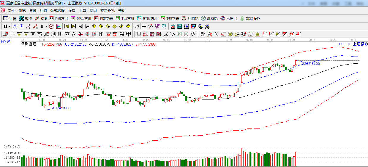 ★依據(jù)贏家江恩系統(tǒng)波段百分比提示:指數(shù)站穩(wěn)六角形90度角度線2210一線,一路強勢上揚上方目標位是2300,短線支撐前高2248點附近。
