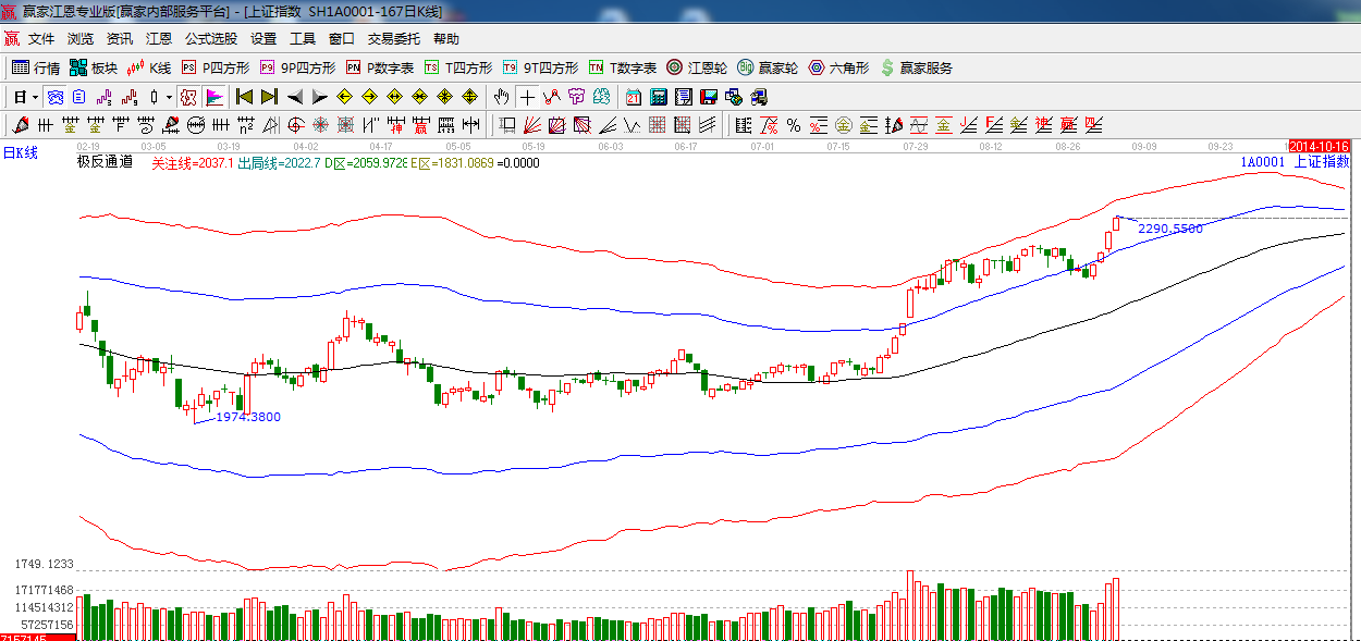 極反通道提示:繼續(xù)放量上行,整體趨勢看多,上方外軌線阻力2318點附近。