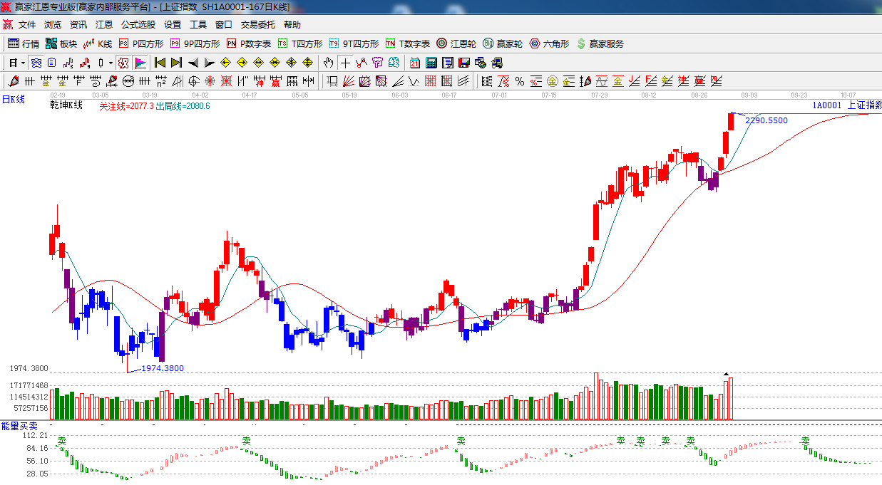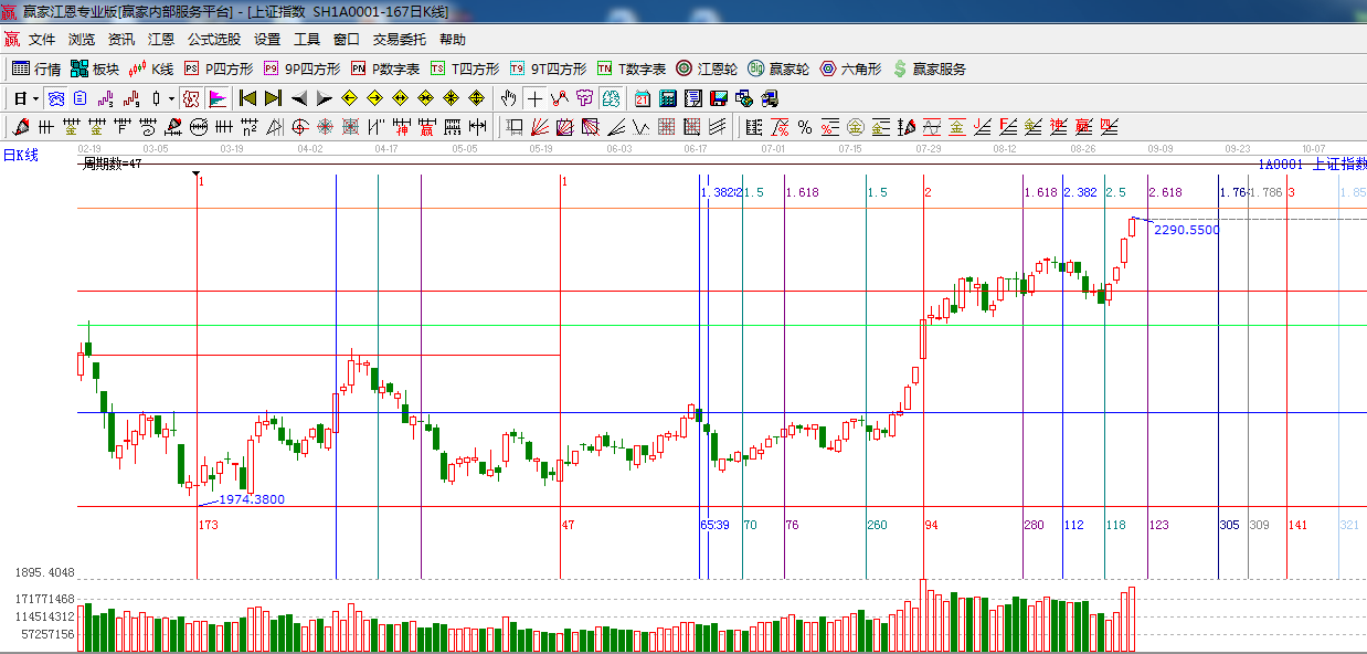 江恩看盤綜述:依據(jù)贏家江恩技術(shù)工具分析得出:周三市場在權(quán)重板塊配合下,繼續(xù)刷新新高,出現(xiàn)了“四連陽”逼空走勢,上方六角形阻力2300點附近,時間提示下一窗口是9月5日,預(yù)計今日沖高震蕩為主,后期仍需關(guān)注量價配合情況,一旦市場放量滯漲,則需引起投資者格外關(guān)注。